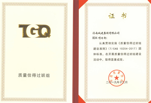 集團(tuán)804項(xiàng)目部榮獲中國質(zhì)量協(xié)會(huì)“質(zhì)量信得過班組”