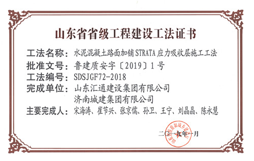 集團“水泥混凝土路面加鋪STRATA應力吸收層施工工法”被評為山東省省級工程建設工法