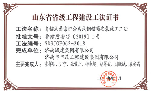 集團(tuán)“自錨式懸索橋分離式鋼錨箱安裝施工工法”被評(píng)為山東省省級(jí)工程建設(shè)工法